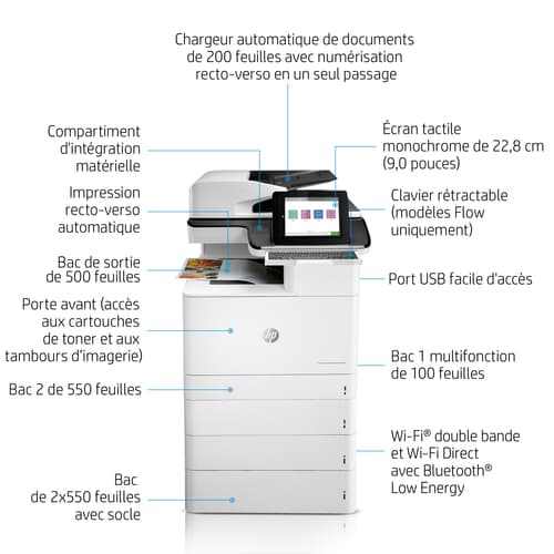 HP Color LaserJet Enterprise Flow LaserJet Enterprise Flow M776z Sans fil Multifunction Couleur Imprimante, Copieur, Scanner; Recto verso, Laser, Impression couleur, 1200 x 1200 DPI, A3, Impression directe, Noir, Blanc