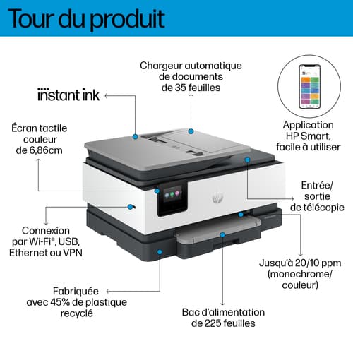 HP OfficeJet Pro 9125e Sans fil All-in-One Couleur Imprimante, Instant Ink; Impression recto-verso