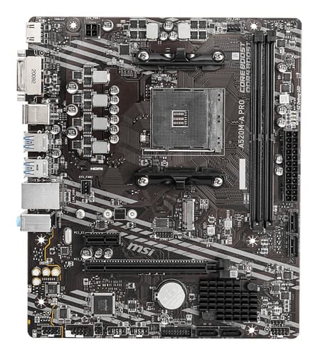 MSI A520M-A PRO, AMD, Emplacement AM4, AMD Ryzen 3000 Series, DDR4-SDRAM, 64 Go, DIMM