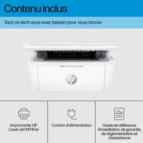 HP LaserJet M140w Sans fil Multifunction Noir et blanc Imprimante, Copieur, Scanner, Laser, 600 x 600 DPI, A4, 20 ppm, Blanc