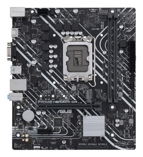 ASUS PRIME H610M-K D4, Intel, LGA 1700, Intel® Celeron®, Intel® Core™ i3, Intel® Core™ i5, Intel® Core™ i7, Intel® Core™ i9,..., DDR4-SDRAM, 64 Go, DIMM