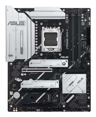 ASUS PRIME X870-P. Fabricant de processeur: AMD, Socket de processeur (réceptable de processeur): Emplacement AM5, Processeurs compatibles: AMD Ryzen 7000 Series, AMD Ryzen 8000 Series, AMD Ryzen 9000 Series. Types de mémoire pris en charge: DDR5-SDRAM, Mémoire interne maximale: 192 Go, Type de support (slot): DIMM. Interfaces de lecteur de stockage prises en charge: M.2, SATA III, Types de lecteurs de stockage pris en charge: HDD & SSD, Niveaux RAID: 0, 1, 5, 10. Version de DisplayPort: 1.4a. Type d'interface Ethernet: 2.5 Gigabit Ethernet