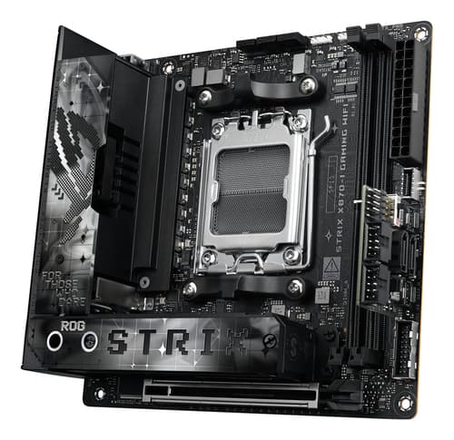 ASUS ROG STRIX X870-I GAMING WIFI, AMD, Emplacement AM5, AMD Ryzen 7000 Series, AMD Ryzen 8000 Series, AMD Ryzen 9000 Series, DDR5-SDRAM, 96 Go, DIMM