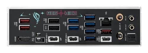 ASUS ROG STRIX X870E-H GAMING WIFI7 HATSUNE MIKU EDITION. Fabricant de processeur: AMD, Socket de processeur (réceptable de processeur): Emplacement AM5, Processeurs compatibles: AMD Ryzen 7000 Series, AMD Ryzen 8000 Series, AMD Ryzen 9000 Series. Types de mémoire pris en charge: DDR5-SDRAM, Mémoire interne maximale: 256 Go, Canaux de mémoire: Double canal. Interfaces de lecteur de stockage prises en charge: M.2, SATA III, Types de lecteurs de stockage pris en charge: HDD & SSD, Niveaux RAID: 0, 1, 5, 10. Type d'interface Ethernet: 5 Gigabit Ethernet, Norme Wi-Fi: Wi-Fi 7 (802.11be), Standards wifi: 802.11a, 802.11b, 802.11g, Wi-Fi 4 (802.11n), Wi-Fi 5 (802.11ac). composant pour: PC, Elément de forme de carte mère: ATX, famille de composant de produits: AMD