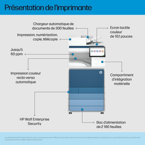 HP Color LaserJet Enterprise Flow LaserJet Enterprise Flow 5800zf Sans fil Multifunction Couleur Imprimante, Copieur, Scanner; Recto verso