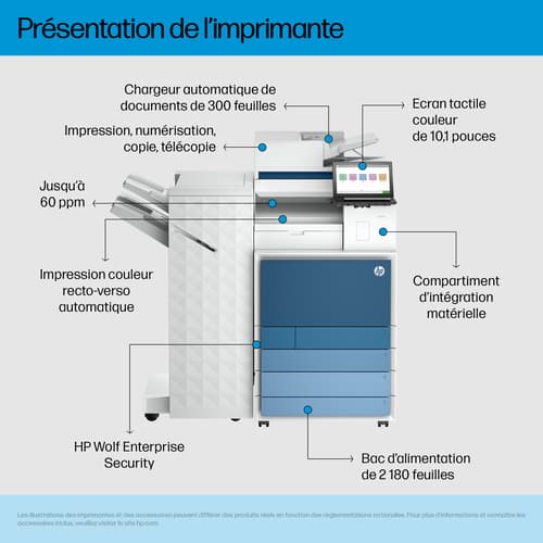 HP Color LaserJet Enterprise Flow LaserJet Enterprise Flow 5800zf Sans fil Multifunction Couleur Imprimante, Copieur, Scanner; Recto verso