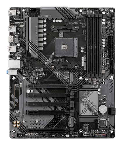GIGABYTE B550 EAGLE Carte mère - Processeurs AMD Ryzen série 5000 G, VRM 10+3+1 phases, jusqu'à 3200 MHz DDR4, 1xPCIe 4.0 + 1xPCIe 3.0 M.2, LAN 1GbE, USB 3.2 Gen 2. Fabricant de processeur: AMD, Socket de processeur (réceptable de processeur): Emplacement AM4, Processeurs compatibles: AMD Ryzen 3000 Series, AMD Ryzen 4000 Series, AMD Ryzen 5000 Series. Types de mémoire pris en charge: DDR4-SDRAM, Mémoire interne maximale: 128 Go, Type de support (slot): DIMM. Interfaces de lecteur de stockage prises en charge: M.2, PCI Express 4.0, SATA III, Types de lecteurs de stockage pris en charge: HDD & SSD, Niveaux RAID: 0, 1, 10. Résolution maximale: 4096 x 2160 pixels. Type d'interface Ethernet: Gigabit Ethernet, Contrôleur de réseau local (LAN): Realtek RTL8111H