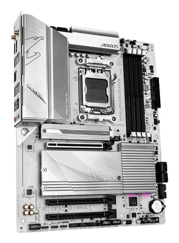 GIGABYTE B650 AORUS ELITE AX ICE Carte mère - Compatible avec les processeurs AMD Ryzen 9000, VRM numérique 12+2+2 phases, jusqu'à 8000 MHz DDR5 (OC), 1xPCIe 5.0 + 2xPCIe 4.0 M.2, Wi-Fi 6E, LAN 2.5GbE, USB 3.2 Gen 2x2. Fabricant de processeur: AMD, Socket de processeur (réceptable de processeur): Emplacement AM5, Processeurs compatibles: AMD Ryzen 7000 Series, AMD Ryzen 8000 Series, AMD Ryzen 9000 Series. Types de mémoire pris en charge: DDR5-SDRAM, Mémoire interne maximale: 256 Go, Type de support (slot): DIMM. Interfaces de lecteur de stockage prises en charge: M.2, SATA III, Types de lecteurs de stockage pris en charge: HDD & SSD, Niveaux RAID: 0, 1, 10. Résolution maximale: 4096 x 2160 pixels. Type d'interface Ethernet: 2.5 Gigabit Ethernet, Contrôleur de réseau local (LAN): Realtek RTL8125, Norme Wi-Fi: Wi-Fi 6E (802.11ax)