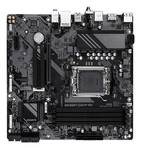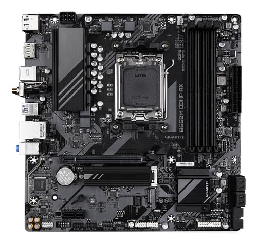 GIGABYTE B650M D3HP AX Carte mère - AMD Ryzen série 9000, VRM 5+2+2 phases, jusqu'à 8000 MHz DDR5 (OC), 2xPCIe 4.0 M.2, WIFI 6E, LAN 2,5 GbE, USB 3.2 Gen 1, AMD, Emplacement AM5, AMD Ryzen 7000 Series, AMD Ryzen 8000 Series, AMD Ryzen 9000 Series, Emplacement AM5, DDR5-SDRAM, 256 Go
