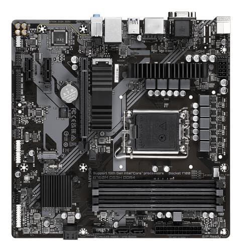 GIGABYTE B760M DS3H DDR4 Carte Mère - Prend en charge les processeurs Intel Core de 14e génération, VRM numérique 6+2+1 phases, jusqu'à 5333MHz DDR4 (OC), 2xPCIe 4.0 M.2, LAN 2.5GbE, USB 3.2 Gen2, Intel, LGA 1700, Intel® Celeron®, Intel® Core™ i3, Intel® Core™ i5, Intel® Core™ i7, Intel® Core™ i9,..., LGA 1700, 128 Go, DDR4-SDRAM