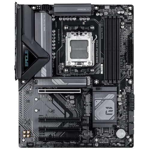GIGABYTE B840 EAGLE WIFI6E Carte Mère - Processeurs AMD Ryzen 9000, VRM 8+2+2 phases, jusqu’à 8200MHz DDR5(O.C), 2xPCIe 4.0 + 1xPCIe 3.0 M.2, Wi-Fi 6E, LAN 2.5GbE, USB 3.2 Gen 2. Fabricant de processeur: AMD, Socket de processeur (réceptable de processeur): Emplacement AM5, Processeurs compatibles: AMD Ryzen 7000 Series, AMD Ryzen 8000 Series, AMD Ryzen 9000 Series. Types de mémoire pris en charge: DDR5-SDRAM, Mémoire interne maximale: 256 Go, Type de support (slot): DIMM. Interfaces de lecteur de stockage prises en charge: M.2, PCI Express 3.0, PCI Express 4.0, SATA III, Types de lecteurs de stockage pris en charge: HDD & SSD, Niveaux RAID: 0, 1, 5, 10. Résolution maximale: 4096 x 2160 pixels. Type d'interface Ethernet: 2.5 Gigabit Ethernet, Contrôleur de réseau local (LAN): Realtek RTL8125, Norme Wi-Fi: Wi-Fi 6E (802.11ax)