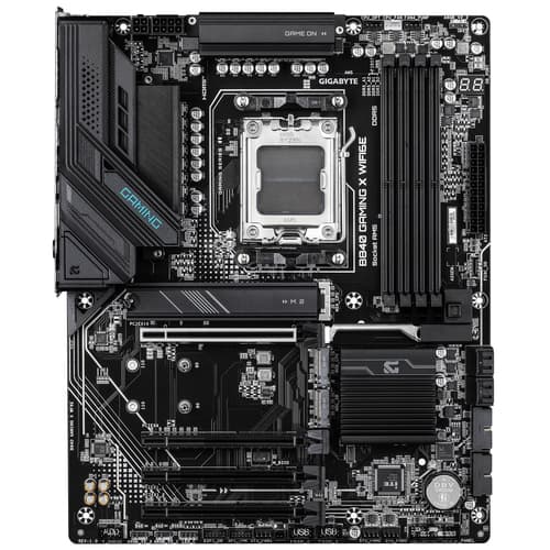 GIGABYTE B840 GAMING X WIFI6E Carte Mère - Processeurs AMD Ryzen 9000, VRM 12+2+2 phases, jusqu’à 7600MHz DDR5(O.C), 2xPCIe 4.0 + 1xPCIe 3.0 M.2, Wi-Fi 6E, LAN 2.5GbE, USB 3.2 Gen 2. Fabricant de processeur: AMD, Socket de processeur (réceptable de processeur): Emplacement AM5, Processeurs compatibles: AMD Ryzen 7000 Series, AMD Ryzen 8000 Series, AMD Ryzen 9000 Series. Types de mémoire pris en charge: DDR5-SDRAM, Mémoire interne maximale: 256 Go, Type de support (slot): DIMM. Interfaces de lecteur de stockage prises en charge: M.2, PCI Express 3.0, PCI Express 4.0, SATA III, Types de lecteurs de stockage pris en charge: HDD & SSD, Niveaux RAID: 0, 1, 5, 10. Résolution maximale: 4096 x 2160 pixels. Type d'interface Ethernet: 2.5 Gigabit Ethernet, Contrôleur de réseau local (LAN): Realtek RTL8125, Norme Wi-Fi: Wi-Fi 6E (802.11ax)