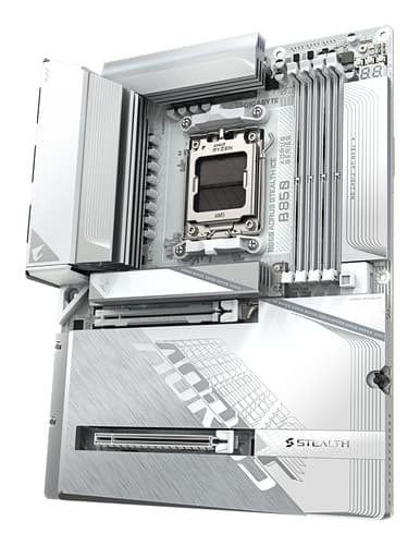 GIGABYTE B850 AORUS STEALTH ICE Carte Mère – Processeurs AMD Ryzen série 9000, VRM numérique 14+2+2 phases, jusqu’à 8200 MHz DDR5 (OC), 2 x M.2 PCIe 5.0 + 2 x PCIe 4.0, Wi-Fi 7, LAN 5 GbE, USB 3.2 Gen 2. Fabricant de processeur: AMD, Socket de processeur (réceptable de processeur): Emplacement AM5, Processeurs compatibles: AMD Ryzen 7000 Series, AMD Ryzen 8000 Series, AMD Ryzen 9000 Series. Types de mémoire pris en charge: DDR5-SDRAM, Mémoire interne maximale: 256 Go, Type de support (slot): DIMM. Interfaces de lecteur de stockage prises en charge: M.2, PCI Express 4.0, PCI Express 5.0, SATA III, Types de lecteurs de stockage pris en charge: HDD & SSD, Niveaux RAID: 0, 1, 5, 10. Résolution maximale: 4096 x 2160 pixels. Type d'interface Ethernet: 5 Gigabit Ethernet, Contrôleur de réseau local (LAN): Realtek RTL8126, Norme Wi-Fi: Wi-Fi 7 (802.11be)