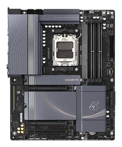 GIGABYTE B850 AI TOP Carte Mère - Processeurs AMD Ryzen Série 9000, 16+2+2 phases VRM numériques, jusqu'à 8600MHz DDR5 (OC), 2xPCIe 5.0 + 1xPCIe 4.0 M.2, LAN 10GbE, WIFI 7, USB 3.2 Gen 2x2, AMD, Emplacement AM5, AMD Ryzen 7000 Series, AMD Ryzen 8000 Series, AMD Ryzen 9000 Series, Emplacement AM5, DDR5-SDRAM, 256 Go