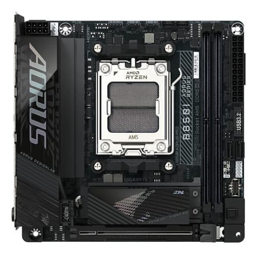 GIGABYTE B850I AORUS PRO Carte Mère - Processeurs AMD Ryzen Série 9000, VRM numérique 8+2+1 phases, jusqu'à 8400MHz DDR5 (OC), 1xPCIe 5.0 + 1xPCIe 4.0 M.2, 2.5LAN, WIFI 7, USB 3.2 Gen 2. Fabricant de processeur: AMD, Socket de processeur (réceptable de processeur): Emplacement AM5, Processeurs compatibles: AMD Ryzen 7000 Series, AMD Ryzen 8000 Series, AMD Ryzen 9000 Series. Types de mémoire pris en charge: DDR5-SDRAM, Mémoire interne maximale: 128 Go, Type de support (slot): DIMM. Interfaces de lecteur de stockage prises en charge: M.2, SATA III, Types de lecteurs de stockage pris en charge: HDD & SSD, Niveaux RAID: 0, 1, 10. Résolution maximale: 4096 x 2160 pixels. Type d'interface Ethernet: Gigabit Ethernet, Norme Wi-Fi: Wi-Fi 7 (802.11be), Standards wifi: 802.11a, 802.11b, 802.11g, Wi-Fi 4 (802.11n), Wi-Fi 5 (802.11ac), Wi-Fi 6 (802.11ax), Wi-Fi 6E...