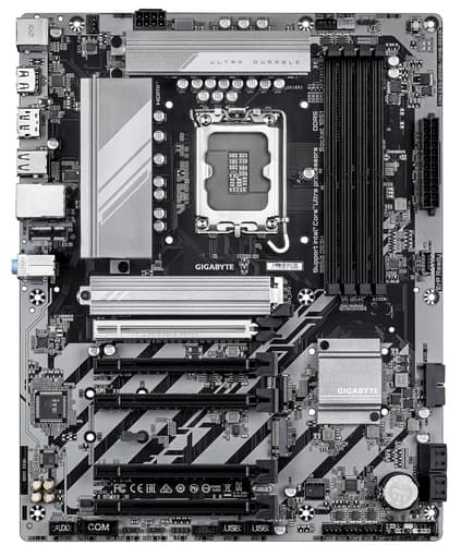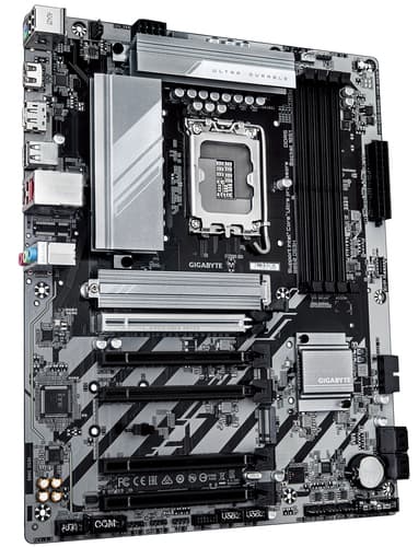 GIGABYTE B860 DS3H Carte mère - Processeurs Intel Core Ultra, VRM 8+1+2+2 phases, jusqu'à 9066MHz DDR5, 1xPCIe 5.0 + 1xPCIe 4.0 M.2, LAN 2,5 GbE, USB 3.2 Gen 2x2. Fabricant de processeur: Intel, Socket de processeur (réceptable de processeur): LGA 1851 (Socket V1), Processeurs compatibles: Intel Core Ultra (série 1), Intel Core Ultra (Series 2). Types de mémoire pris en charge: DDR5-SDRAM, Mémoire interne maximale: 256 Go, Type de support (slot): DIMM. Interfaces de lecteur de stockage prises en charge: M.2, SATA III, Types de lecteurs de stockage pris en charge: HDD & SSD, Niveaux RAID: 0, 1, 5, 10. Résolution maximale: 4096 x 2160 pixels. Type d'interface Ethernet: 2.5 Gigabit Ethernet, Contrôleur de réseau local (LAN): Realtek RTL8125