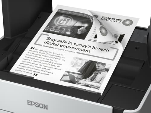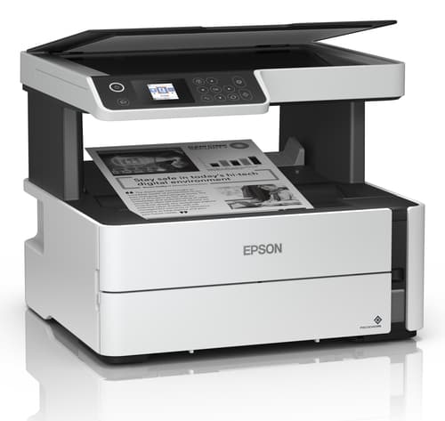 Epson EcoTank ET-M2170. Technologie d'impression: Jet d'encre, Impression: Impression mono, Résolution maximale: 1200 x 2400 DPI. Copier: Copie simple, Résolution max. des copies: 1200 x 2400 DPI. Numérisation: Numérisation couleur, Résolution de numérisation optique: 1200 x 2400 DPI. Taille de papier de série A ISO maximum: A4. Wifi. Impression directe. Couleur du produit: Noir, Gris, Blanc