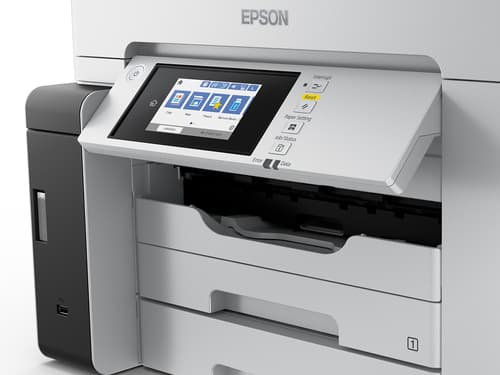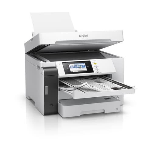 Epson EcoTank ET-M16680. Technologie d'impression: Jet d'encre, Impression: Impression mono, Résolution maximale: 4800 x 1200 DPI. Copier: Copie simple, Résolution max. des copies: 1200 x 1200 DPI. Numérisation: Numérisation couleur, Résolution de numérisation optique: 1200 x 1200 DPI. Fonctions recto verso: Impression, Numérisation. Taille de papier de série A ISO maximum: A3. Wifi. Impression directe. Couleur du produit: Noir, Gris