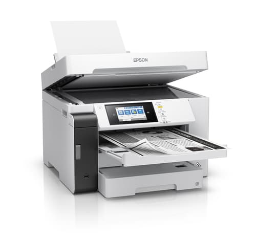 Epson EcoTank Pro ET-M16685. Technologie d'impression: Jet d'encre, Impression: Impression mono, Résolution maximale: 4800 x 2400 DPI. Copier: Copie simple, Résolution max. des copies: 1200 x 2400 DPI. Numérisation: Numérisation couleur, Résolution de numérisation optique: 1200 x 2400 DPI. Fonctions recto verso: Impression, Numérisation. Taille de papier de série A ISO maximum: A3. Wifi. Impression directe. Couleur du produit: Noir, Gris