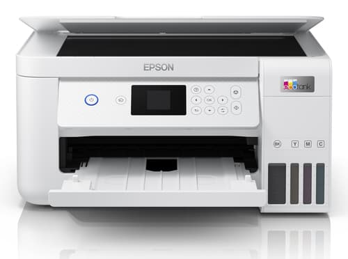 Epson EcoTank ET-2856. Technologie d'impression: Jet d'encre, Impression: Impression couleur, Résolution maximale: 5760 x 1440 DPI, Vitesse d'impression (couleur, qualité normale, A4/US Letter): 15 ppm. Numérisation: Numérisation couleur, Résolution de numérisation optique: 1200 x 2400 DPI. Fonctions recto verso: Impression. Taille de papier de série A ISO maximum: A4. Wifi. Impression directe. Couleur du produit: Blanc