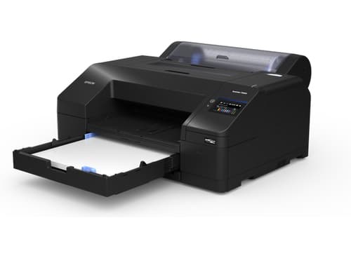 Epson SureColor P5300. Technologie d'impression: Jet d’encre piézoélectrique, Résolution maximale: 5760 x 1440 DPI, Couleurs d'impression: Cyan clair, Gris clair, Pigment cyan, Pigment gris, Pigment noir mat, Pigment photo black, Pigment.... Capacité d’alimentation totale: 250 feuilles, Capacité maximale d'entrée: 250 feuilles. Format d’impression maximale: A2 (420 x 594 mm), ISO, Format Series A (A0...A9): A2, A3, A4. LAN Ethernet : taux de transfert des données: 10,100,1000 Mbit/s. Couleur du produit: Noir, Écran: LCD, Taille de l'écran: 10,9 cm (4.3")