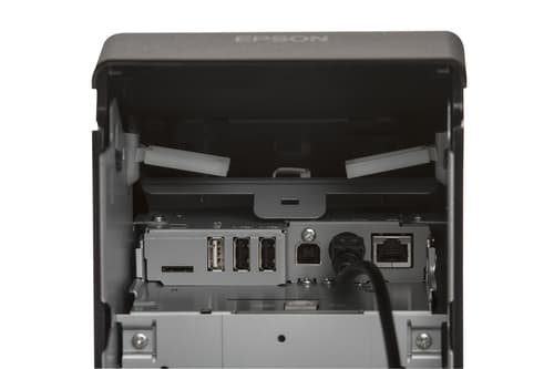 Epson TM-m30II-S (012): USB + Ethernet + BT + NES + Lightning + SD, Black, PS, EU. Technologie d'impression: Thermique directe, Type: Imprimantes POS, Résolution maximale: 203 x 203 DPI. Diamètre max. du rouleau: 8,3 cm, Largeur de papier supportée: 58 mm - 80 mm (Breite), Largeur maximum d'impression: 8 cm. Technologie de connectivité: Avec fil, Connecteur USB: USB Type-A / USB Type-B. Cartes mémoire compatibles: MicroSD (TransFlash), Niveau de pression sonore (impression): 55 dB, Temps moyen entre pannes: 360000 h. Couleur du produit: Blanc