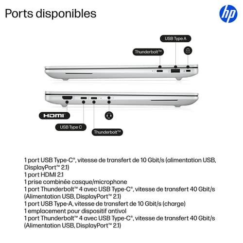 HP Elite mt645 G8 AMD Ryzen™ 5 7535U Ordinateur portable 35,6 cm (14") WUXGA 16 Go DDR5-SDRAM 256 Go SSD Wi-Fi 6E (802.11ax) Windows 10 IoT Enterprise Argent