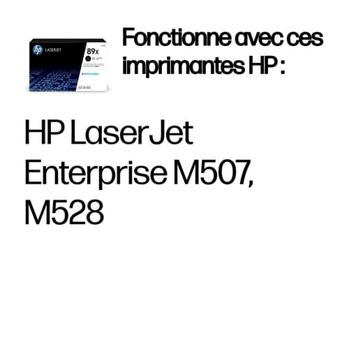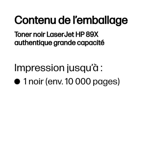 HP Toner noir LaserJet 89X authentique grande capacité. Rendement par page de toner noir: 10000 pages, Couleurs d'impression: Noir, Quantité: 1 pièce(s)