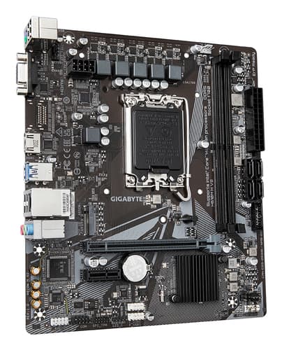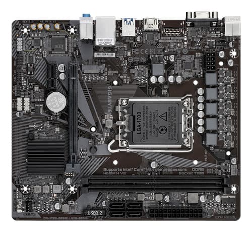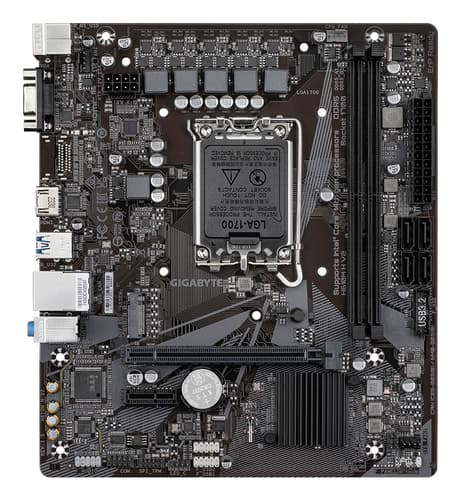 GIGABYTE H610M H V2 Carte mère - Compatible avec processeurs Intel Core 14th CPUs, 4+1+1 Hybrid Digital VRM, up to 5600MHz DDR5, 1xPCIe 3.0 M.2, GbE LAN, USB 3.2 Gen 1. Fabricant de processeur: Intel, Socket de processeur (réceptable de processeur): LGA 1700, Processeurs compatibles: Intel® Celeron®, Intel® Core™ i3, Intel® Core™ i5, Intel® Core™ i7, Intel® Core™ i9,.... Types de mémoire pris en charge: DDR5-SDRAM, Mémoire interne maximale: 96 Go, Type de support (slot): DIMM. Interfaces de lecteur de stockage prises en charge: M.2, SATA III, Types de lecteurs de stockage pris en charge: HDD & SSD. Famille d'adaptateur graphique: Intel, Adaptateur graphique: HD Graphics, Résolution maximale: 4096 x 2304 pixels. Connecteur USB: USB Type-A