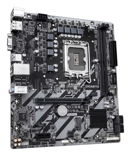 GIGABYTE H810M S2H Carte mère - Processeurs Intel Core Ultra (Série 2), VRM 4+1+2 phases, jusqu'à 6400 MHz DDR5, 1xPCIe 4.0 M.2, LAN 1GbE, USB 3.2 Gen 1. Fabricant de processeur: Intel, Socket de processeur (réceptable de processeur): LGA 1851 (Socket V1), Processeurs compatibles: Intel Core Ultra (Series 2). Types de mémoire pris en charge: DDR5-SDRAM, Mémoire interne maximale: 128 Go, Type de support (slot): DIMM. Interfaces de lecteur de stockage prises en charge: M.2, PCI Express 4.0, SATA III, Types de lecteurs de stockage pris en charge: HDD & SSD, Niveaux RAID: 0, 1, 5, 10. Résolution maximale: 4096 x 2160 pixels. Type d'interface Ethernet: Gigabit Ethernet, Contrôleur de réseau local (LAN): Realtek RTL8111H
