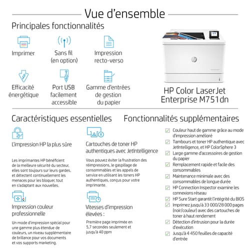 HP Color LaserJet Enterprise LaserJet Enterprise M751dn Couleur Imprimante, Ethernet uniquement; Recto verso, Laser, Couleur, 1200 x 1200 DPI, A3, 41 ppm, Impression recto-verso