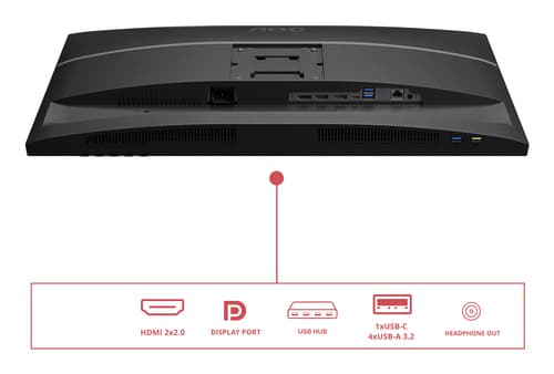 AOC E4 U27E4CV. Taille de l'écran: 68,6 cm (27"), Résolution de l'écran: 3840 x 2160 pixels, Type HD: 4K Ultra HD, Technologie d'affichage: LED, Temps de réponse: 4 ms, Format d'image: 16:9, Angle de vision horizontal: 178°, Angle de vision vertical: 178°. Haut-parleurs intégrés. Concentrateur USB intégré, Version du concentrateur USB: 3.2 Gen 1 (3.1 Gen 1). Montage VESA, Réglage de la hauteur. Couleur du produit: Noir